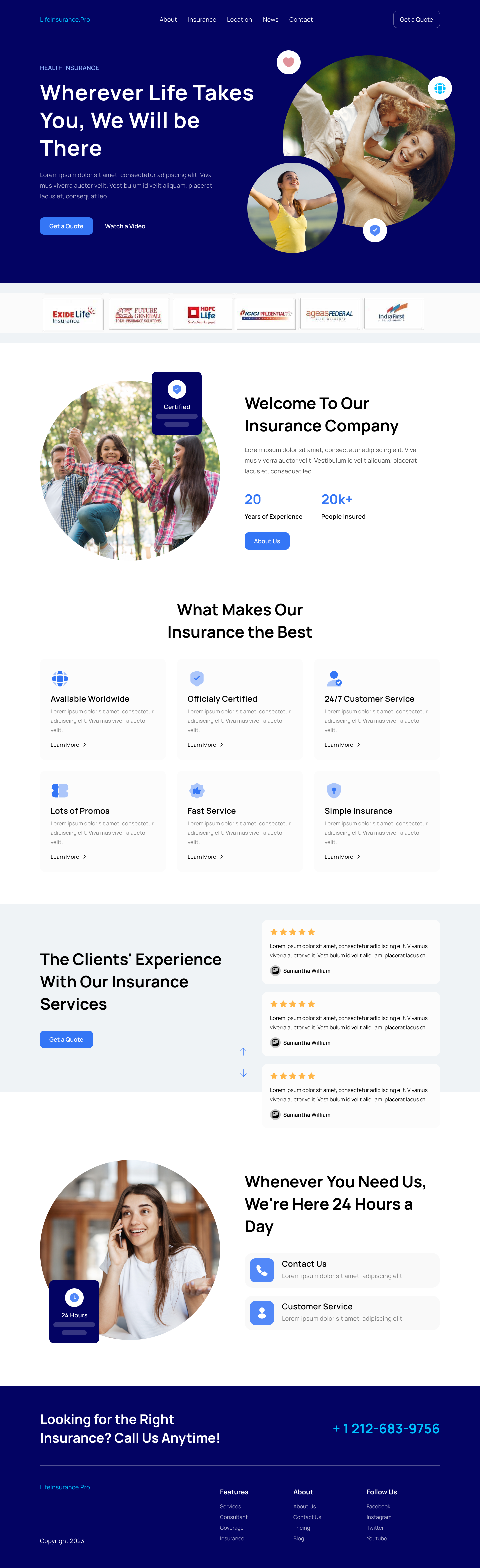 LifeInsurance Pro is a modern, responsive website designed for a life and health insurance company. The design focuses on building trust, delivering information clearly, and encouraging conversions through well-placed calls to action. The platform is intended to support both new customers and returning clients in understanding services and reaching support easily.