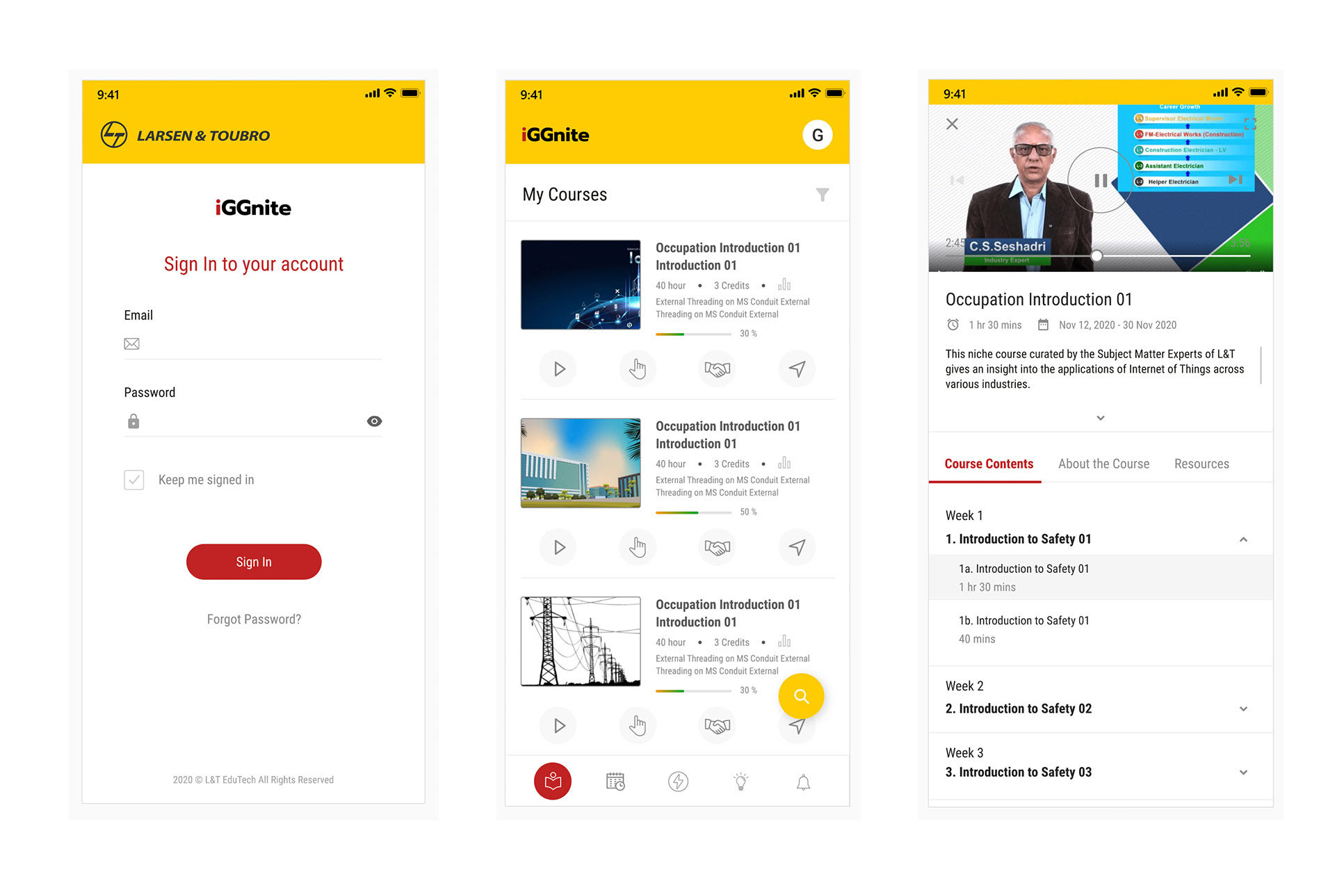 iGGnite is a corporate e-learning mobile platform created by Larsen & Toubro (L&T) to upskill technical professionals through structured, expert-led courses. The app offers on-demand video-based learning with progress tracking and course assessments.